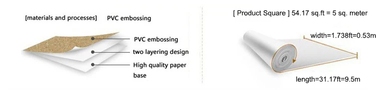 Product Size: 0.53m(W) * 9.5m(L)=5.0 Square meter/Set/roll